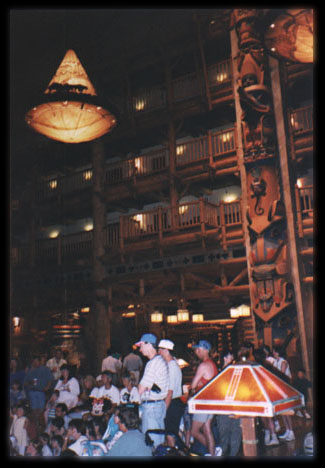 A shot looking up from the lobby at the other totem pole. All those people were gathered around because there was a bird show going on if I remember correctly.