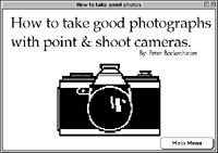 Cards are what make up a stack and cards are linked together by buttons. HyperCard lets you create animations too, by a simple programming language that isn't that hard to learn.