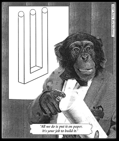When I first got this image from my mom's boyfriend John, the quality wasn't very good because it was a photocopy of a photocopy then scaned into the computer. Almost all of the wood wall was gone. What was left of it I cloned to fill in the spot that was missing. The shape was more like a inset next to the monkey, so I made it so it was like a poster on the wall. My mom's boyfriend is a Project Engineer at a trade show exhibit company and this picture was a good joke for them.