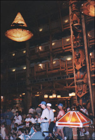 A shot looking up from the lobby at the other totem pole. All those people were gathered around because there was a bird show going on if I remember correctly.