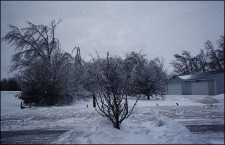 The night before I took these pictures there was rain and overnight it had frozen. So basically all the trees broke and drooped from the weight.