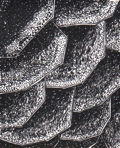 | Problem #1. In keeping with the idea "less is more," choose one of the following: an industrial object, animal, plant, or insect, and using black and white only, design it in its entirety by simplifying its physical characteristics into flat negative and positive shapes. | Problem #2. Crop the original design you created for Problem #1, yet retain its readability. | Problem #3. Drastically crop the design you created for Problem #1 so readability is no longer a factor. Abstract shapes are the main concern. |