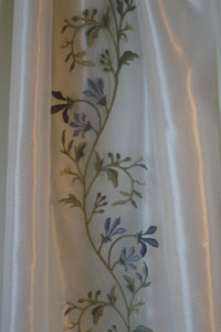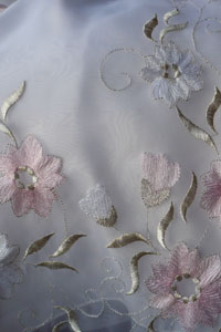 from its sheer embroidered overlay of embroidered lace netting, with a satin