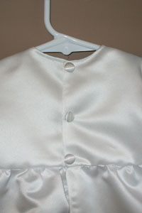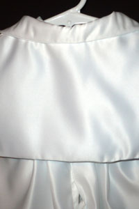 Custom made romper made of white silk dupioni with silk satin trim in white
